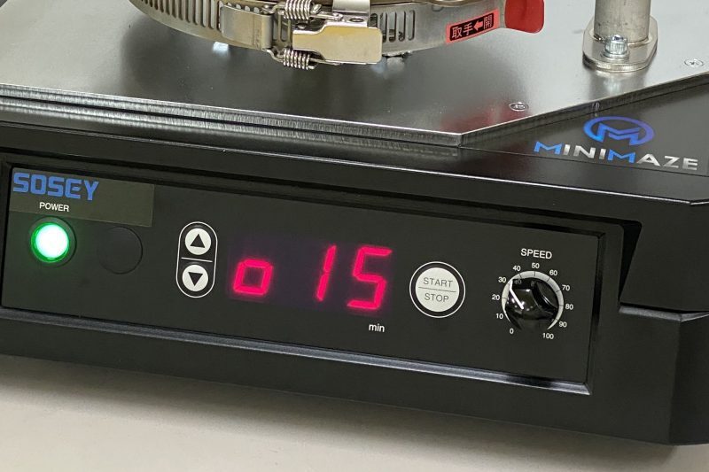 ![]() 좌우로 용기를 회전 시키는 자동 반전 기능 및 회전 속도를 조절 할 수 있는 가변속 사양이므로 교반 효율이 크게 증가했습니다. | ![]() 보기 쉽고 조작성이 좋은 디지털 패널로 설정 실수를 줄여 안심하고 편리하게 작업할 수 있습니다. | ![]() 교반 시간을 1~99분까지 설정 할 수 있습니다. 고점도 재료도 천천히 교반할 수 있습니다. |